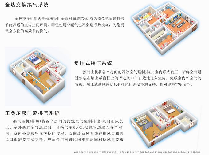 古茨cozyee新风系列为任何一种物业提供完善的新风换气解决方案。 基于不同物业类型、通风环境及业主预算等,古茨cozyee中央新风实验室的室内环境专家为您提供了三种换气方案。源自德国的专业中央新风技术,能保证主机长期、连续、高可靠性、低能耗、低噪音的运行。古茨ozyee中央新风系统,适用于各种类型物业的换气需求,带给您健康舒适的室内空间。 我们为您设计了三种专业的中央新风系统方案: 全热交换中央新风换气系统;负压式中央新风换气系统;正负压结合的双向流新风换气系统